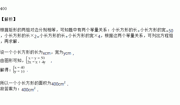 如图,宽为50 cm的长方形图案由10个完全相同的小长方形拼成,其中一个小长方形的面积为_______
