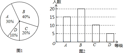 £¨2£©DµÈ¼¶ÈËÊý£º50¡Á10%=5£¨ÈË£©£¬CµÈ¼¶ÈËÊý£º50-15-20-5=10£¨ÈË£©£¬