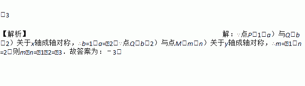 已知点P(1,a)与Q(b,2)关于x轴成轴对称,又有点Q(b,2)与点M(m,n)关于y轴成轴对称,则m-n的值为__________