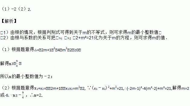 (2)若方程的两个实数根为x1,x2,且(x1﹣x2)2+m2=21,求m的值.
