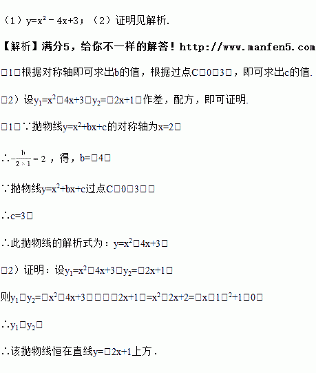 已知抛物线y=x2+bx+c的对称轴为x=2,且过点C(0,3)
