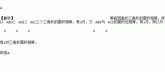 如图,在△ABC中,D、E分别为BC上两点,且BD=DE=EC,则图中面积相等的三角形有( )