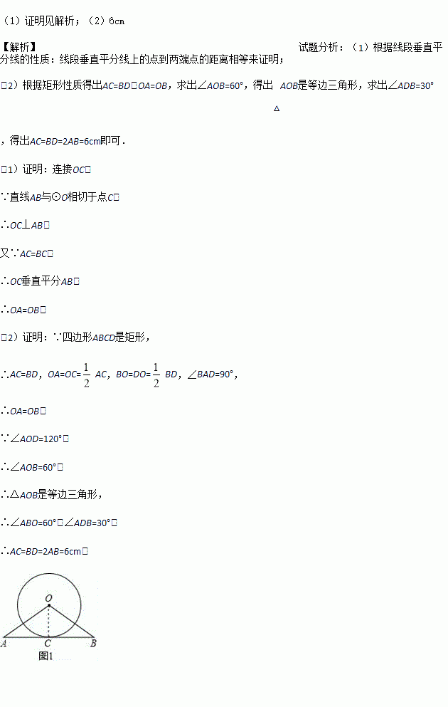(1)如图,已知直线AB与⊙O相切于点C,且AC=BC,求证:OA=OB.