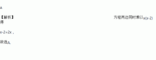 A 【解析】方程两边同时乘以x(x-2)得 x-2=2x, 故选A.