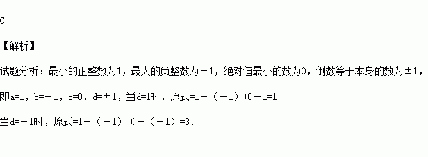 设a为最小的正整数,b是最大的负整数,c是绝对值最小的数,d是倒数等于自身的有理数,则a﹣b+c﹣d的值为( )