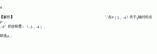 点P(3,﹣4)关于y轴的对称点P′的坐标是( )