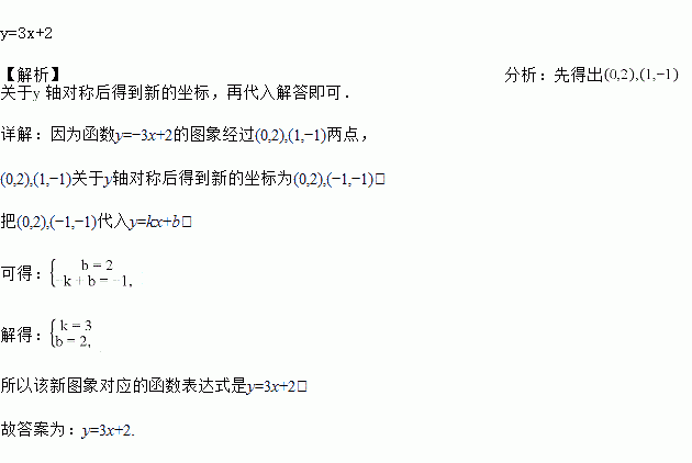 平面直角坐标系中把函数y=-3x+2的图象关于y轴对称后得到新的函数图象,则该新图象对应的函数表达式是_________