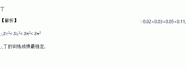 2014年9月3日,湖南省第十二届运动会在娄底举行,甲、乙、丙、丁四位运动员在“110米栏”训练中,每人各跑5次,据统计,平均成绩都是13.2秒,方差分别是S甲2=0.11,S乙2=0.03,S丙2=0.05,S丁2=0.02,则这四位运动员“110米栏”的训练成绩最稳定的是__________.