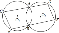 (2)由四边形CEFD是平行四边形,得CE=DF.由于⊙O1和⊙O2是两个等圆,因此
