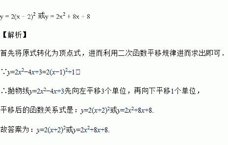 将二次函数的图象先向左平移个单位长度,再向下平移个单位长度,得到函数的图象的表达式是________.