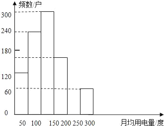 近期,中宣部、国家发改委发出开展节俭养德全民节约行动的通知,在全社会营造厉行节约、拒绝浪费的浓厚氛围,我市某中学为了解该校学生家庭月均用电量情况,给学生布置了收集自己家中月均用电量数据的课外作业,学校随机抽取了1000名学生家庭月均用电量的数据,并将调查数据整理如下: