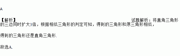 将一个直角三角形三边扩大3倍,得到的三角形一定是( )