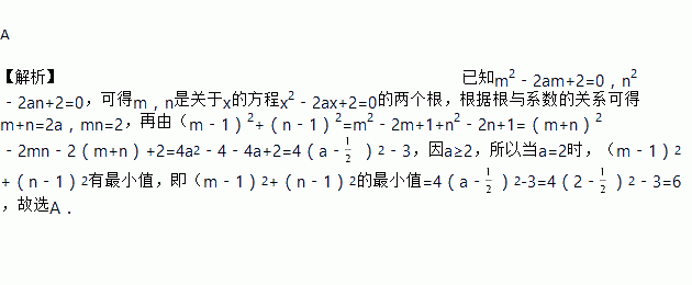 已知a≥2,m2-2am+2=0,n2-2an+2=0,m≠n,则(m-1)2+(n-1)2的最小值是( )