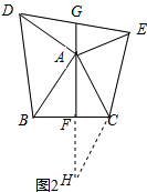 (2)如图2,连接DE,过A作AG⊥DE,延长GA交BC于F,猜想线段AF和DE的数量关系,并证明.