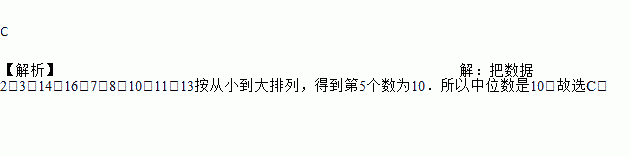 2,3,14,16,7,8,10,11,13的中位数是( )