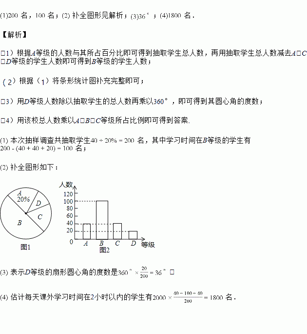 本次抽样调查共抽取了多少名学生?其中学习时间在B等级的学生有多少人?![]()