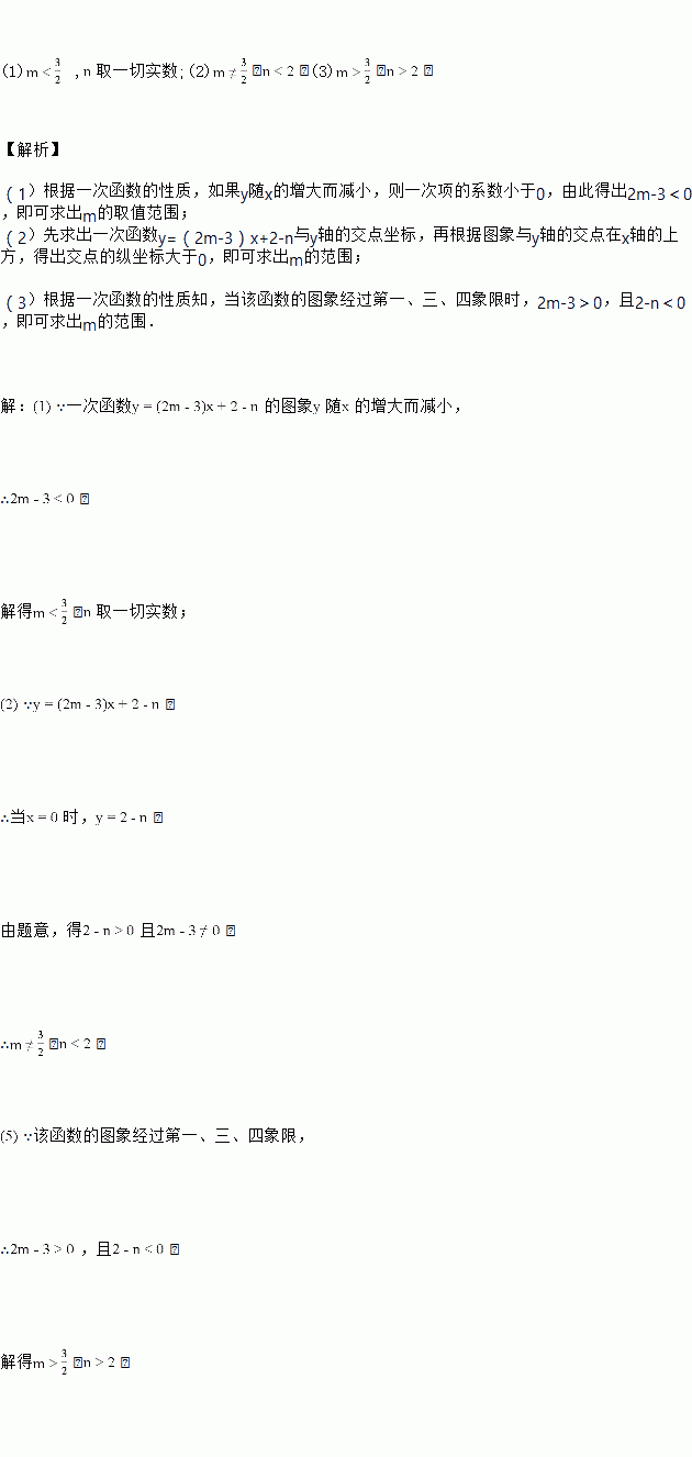 已知一次函数满足下列条件,分别求出,的取值范围.