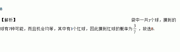 一个不透明的布袋里装有7个只有颜色不同的球,其中3个红球,4个白球,从布袋中随机摸出一个球,摸出的球是红球的概率是( )