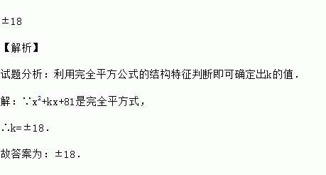 若x2+kx+81是完全平方式,则k的值应是 .