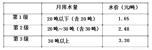 例:若某用户2016年9月份的用水量为35吨,按三级计算则应交水费为: