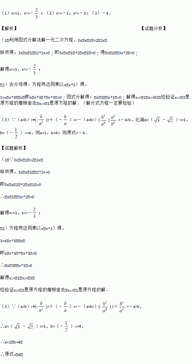 (3)先化简,后求值:(a2b)2•()3÷(﹣)4,其中a=(﹣)0,b=(﹣)﹣2.