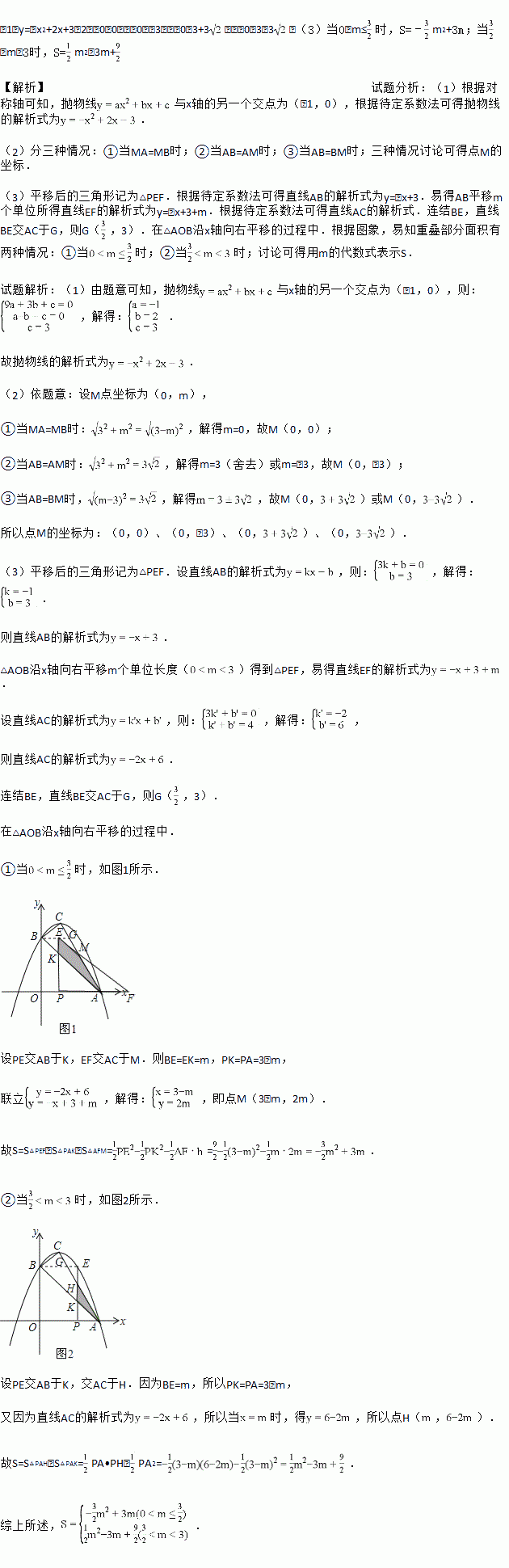 (3)将△AOB沿x轴向右平移m个单位长度(0<m<3)得到另一个三角形,将所得的三角形与△ABC重叠部分的面积记为S,用m的代数式表示S,并求其最大值.
