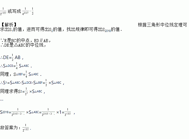 如图,△ABC是面积为1的等边三角形。取BC边中点E,作ED∥AB,