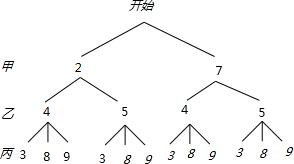 (2011四川泸州,23,6分)甲口袋中装有两个相同的小球,它们的标号分别为2和7,乙口袋中装有两个相同的小球,它们的标号分别为4和5,丙口袋中装有三个相同的小球,它们的标号分别为3,8,9.从这3个口袋中各随机地取出1个小球.