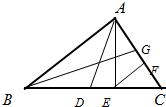 (4)以B点位圆心,以任意长为半径画弧,交AB与BC于点M、N,再分别以M、N为圆心,大于$frac{1}{2}MN$长为半径画弧,交于点P,连接BP交AC于G.