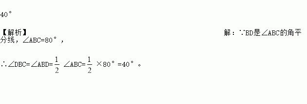 如图,在△ABC中,BD是∠ABC的角平分线,已知∠ABC=80°,则∠DBC= .