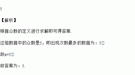 已知一组数据3、x、4、5、6,若该组数据的众数是5,则x的值是_____.