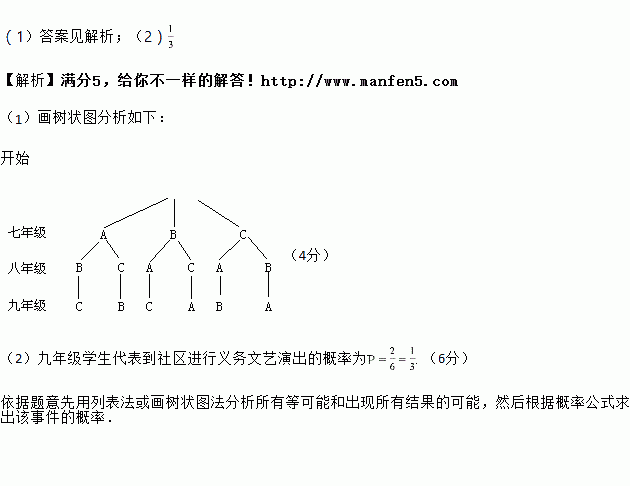 求九年级学生代表到社区进行义务文艺演出的概率.![]()