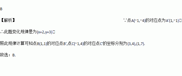 是由三角形ABC平移得到的,点A(-1,-4)的对应点为
