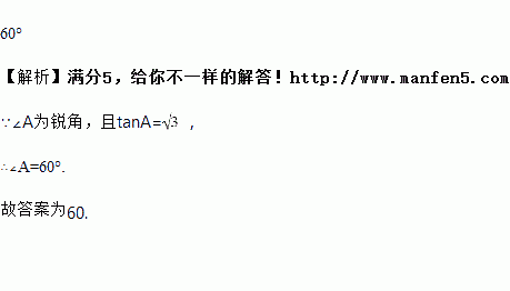 已知∠A为锐角,且tanA=,则∠A的大小为_____.
