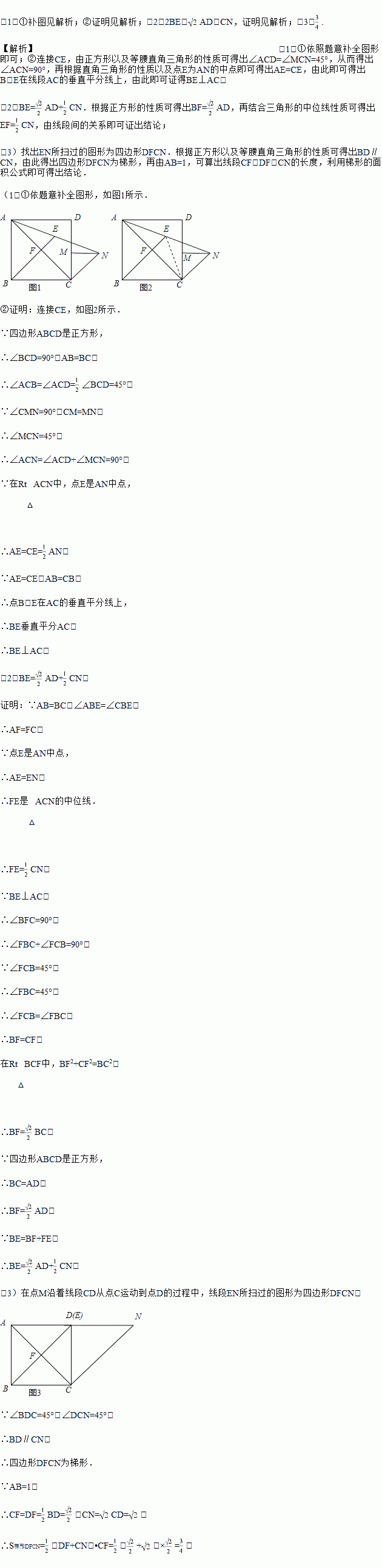 (3)设AB=1,若点M沿着线段CD从点C运动到点D,则在该运动过程中,线段EN所扫过的面积为______________(直接写出答案).