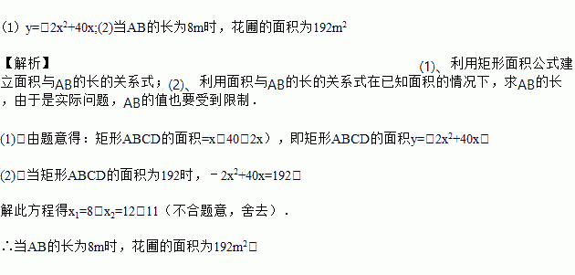 (2)如果要围成鸡圈的面积为192m2的花圃,AB的长是多少?