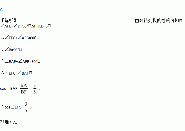 如图,在矩形ABCD中,AB=3,AD=5,点E在DC上,将矩形ABCD沿AE折叠,点D恰好落在BC边上的点F处,那么cos∠EFC的值是( )