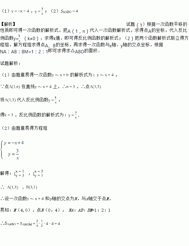 的图像与反比例函数()在第一象限的图像交于A(1,n)和B两点.