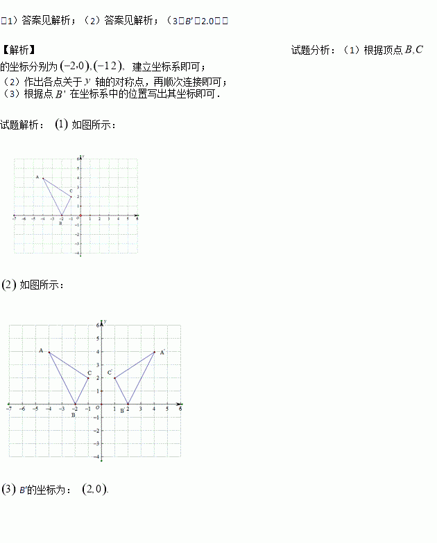 (2)请作出△ABC关于y轴对称的△A′B′C′;