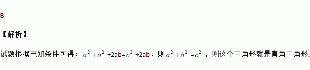 三角形的三边长分别为a,b,c,且满足等式:(a+b)2-c2=2ab,则此三角形是( )