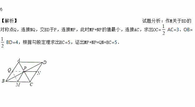 如图,菱形ABCD的边长为6,M、N分别是边BC、CD的上点,且MC=2MB,ND=2NC.点P是对角线上BD上一点,则PM+PN的最小值是_____.