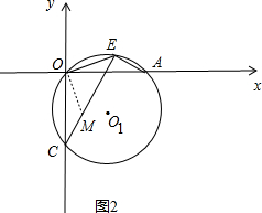(3)如图(2)过A、O、C三点作⊙O1,点E是劣弧AO上一点,连接EC、EA、ED,当点E在劣弧AO上运动时(E不与A、O两点重合),则$\frac{EC-EA}{EO}$的值是否发生变化?如果不变,求其值:如果变化,说明理由
