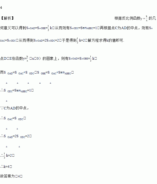 (x>0)的图象于点E,EB垂直x轴于点B,若直角梯形ABEC的面积为1,则k的值为_____.