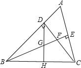 如图,△ABC中,∠ABC=45°,CD⊥AB,垂足为D,BE平分∠ABC,且BE⊥AC,垂足为E,与CD交于F,H是BC边的中点,F是CD边的中点,连接DH与BE交于点G,则下列结论: