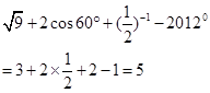 点评:本题难度较低,主要考查学生对实数运算的掌握,需要涉及三角函数。为中考常见题型要牢固掌握。