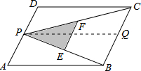 分析:过P作PQ平行于DC,由DC与AB平行,得到PQ平行于AB,可得出四边形PQCD与ABQP都为平行四边形,进而确定出△PDC与△PCQ面积相等,△PQB与△ABP面积相等,再由EF为△BPC的中位线,利用中位线定理得到EF为BC的一半,且EF平行于BC,得出△PEF与△PBC相似,相似比为1:2,面积之比为1:4,求出△PBC的面积,而△PBC面积=△CPQ面积+△PBQ面积,即为△PDC面积+△PAB面积,即为平行四边形面积的一半,即可求出所求的面积.