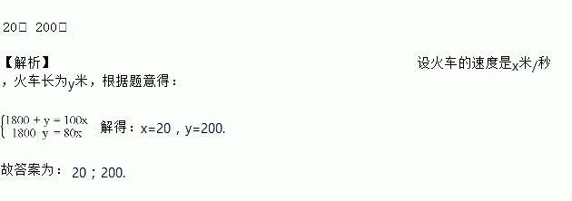 一铁路大桥长1800米,一列火车从桥上通过,测得火车从开始上桥到完全离开桥共用分钟,整列火车完全在桥上的时间为分钟,则火车的速度为________米/秒,火车长为________米.