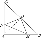 分析:①先从直观上猜想,再从理论上寻找依据.从O为BC的中点想到直角三角形斜边上的中线等于斜边的一半,所以连OA,利用等腰三角形的性质结合AN=BM,易证△AON≌△BOM,判断△OMN的形状;