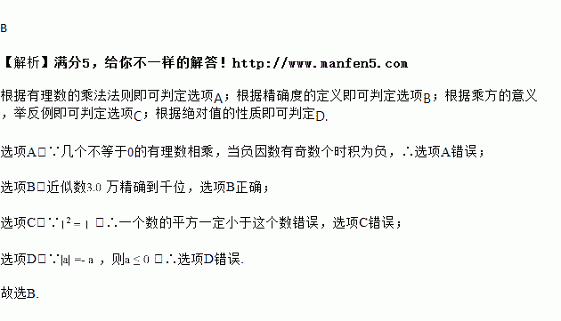 A. 几个有理数相乘,当负因数有奇数个时积为负