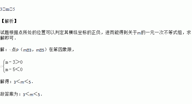 在平面直角坐标系内,点P(m-3,m-5)在第四象限中,则m的取值范围是_____